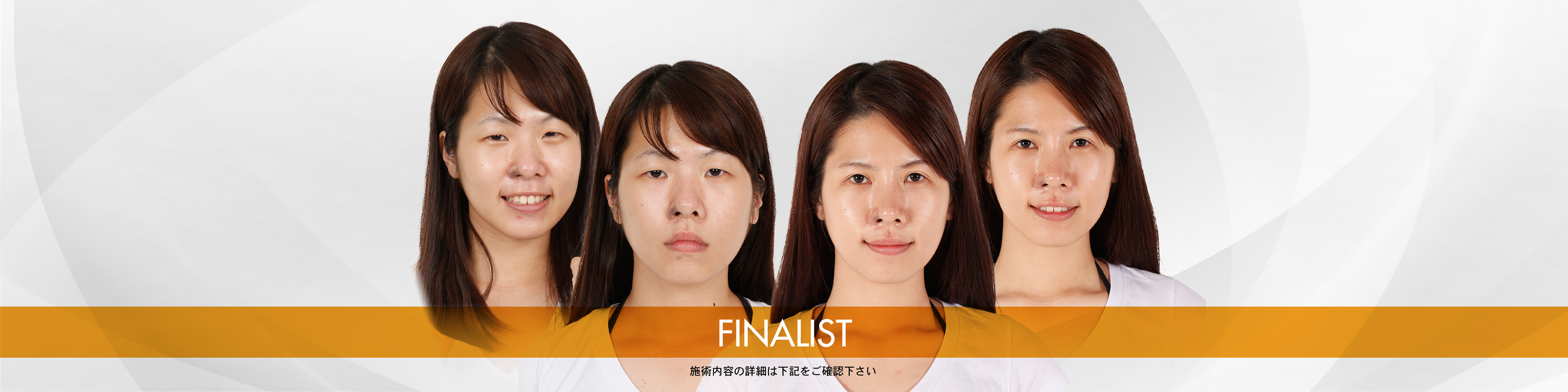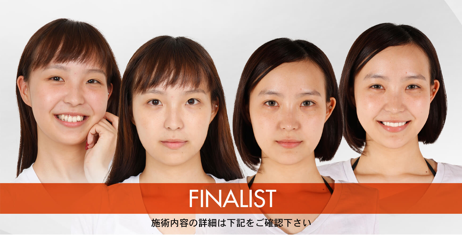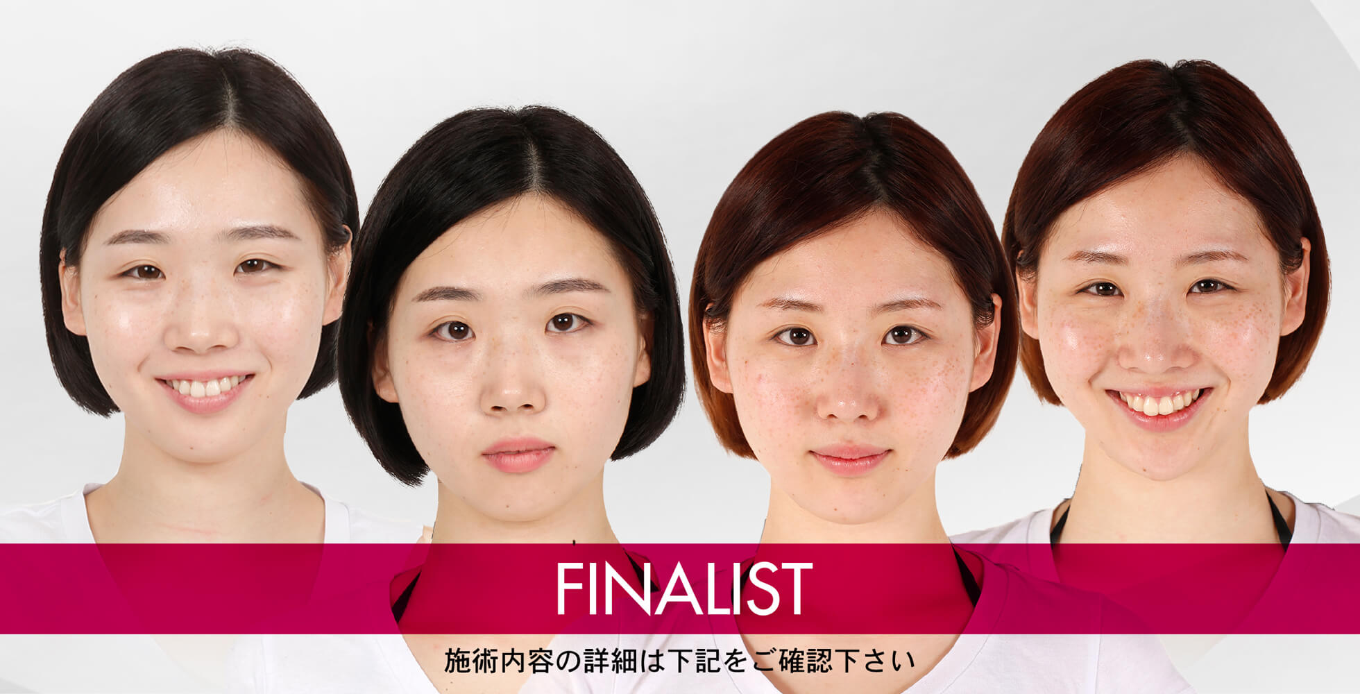 最終的な仕上がりとして、二重の幅を広げることで、柔らかい印象になり、笑顔の時に、目元がとっても可愛らしくなりました。 フェイスラインもエラがなくなり、女性らしい華奢な印象に変化しました。
