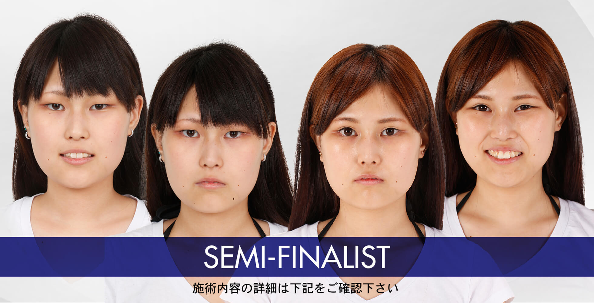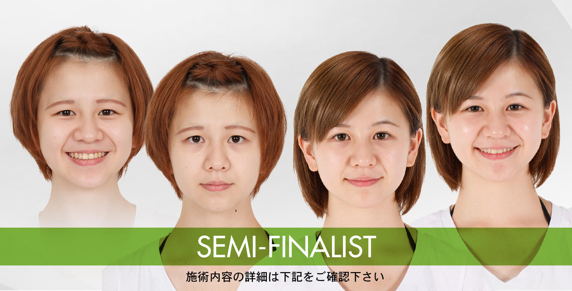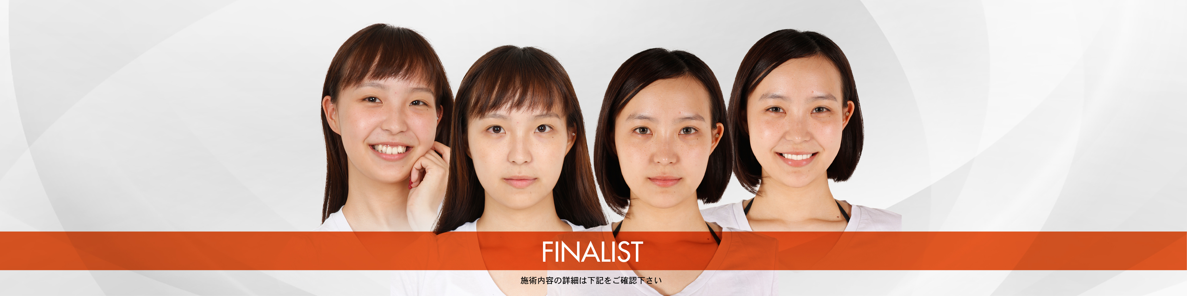 最終的な仕上がりとして、二重の幅を広げることで、柔らかい印象になり、笑顔の時に、目元がとっても可愛らしくなりました。 フェイスラインもエラがなくなり、女性らしい華奢な印象に変化しました。